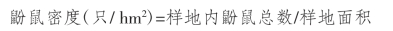 欲精确计算样地内的鼢鼠数量,首先测算样地面积。对平整的样地,步测后直接计算即可;对不整多边形的样地,需进行面积测算。依据样地内捕获的鼢鼠数量与面积的比值,即可测知单位面积内的鼢鼠数量。即: