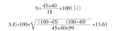例:标志流放了沙鼠45只,重捕得40只,其中已标志鼠有l 8只。求此地沙鼠数及其置信区间。