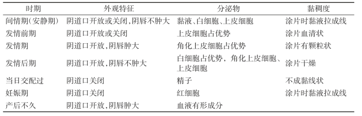 各时期的阴道分泌物及阴道外观特征见表1-6。