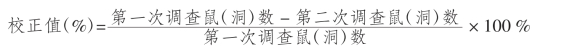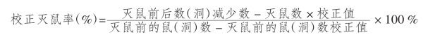●校正法以上两种方法调查灭鼠效果,会因为自然死亡及灭鼠捕鼠等原因,而造成一定程度的误差,所以在计算过程应加以校正,方法是设对照样地。和试验样地进行同样的调查,对照样地不灭鼠,计算出灭鼠原因以外鼠洞或鼠减少的百分率,作为校正值:
