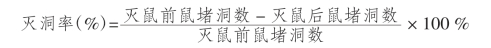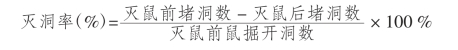 对于鼢鼠可用开洞堵洞法,灭鼠前先把样地里的洞道掘开,洞内如果有鼠,就会将掘开的洞口堵上,并记录堵洞数,并做好标记,灭鼠5~7 d后,用同样的方法调查堵洞数,记录灭洞率:
