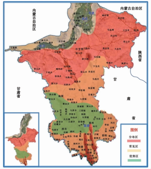 【亚种及分布】记载草兔有49个亚种,我国有8个亚种。其中,内蒙古亚种(L.c.tolai Pallas,1778)模式产地在蒙古鄂嫩河畔。冬季臀部灰色。头及体背面毛浅黄灰色与黑色混合,背中间最为深暗,至胁部即呈鲜明浅淡土黄色。夏天臀部无灰色;体背面毛色不黑,整个体背呈均匀浅黄色,仅由黑色毛尖稍为使毛色深些。分布于内蒙古的额尔古纳旗、免渡河、喜桂图旗、海拉尔、满洲里、查千诺尔、二连、西马珠穆沁旗、温都尔庙、察哈尔右翼前旗、达尔罕茂明安联合旗、包头等地及宁夏,山西岢岚和陕西北部靖边。国外分布于蒙古和俄罗斯。近来也有学者将其提升为种,既蒙古兔(L.tolai Pallas,1778)。中原亚种(L.c.swinsis Thomas,1894)模式产地在山东曲阜。体色鲜明,较内蒙古亚种更显出土黄色。冬季臀部不灰,体侧面有若干白色或浅土黄色长毛。夏天毛薄,体侧无白色或浅土黄色长毛。分布于东北、华北、西北、华东。包括北京,河北东陵、三河、北戴河、昌黎、怀来、井陉、新安,辽宁阜新、彰武、新金、义县,吉林公主岭、长春、蔡家沟、白城,黑龙江萨尔图、玉泉、小岭、哈尔滨、齐齐哈尔、洮南、宋站、喇嘛甸,山东西北、西南、中南和胶东,河南开封及其他东部地区,安徽和江苏长江以北地区。湟水河谷亚种(L.c.huangshuiensis Luo,1982)模式产地在青海湟中湟水河谷多巴。分布于青海湟水河谷。中亚亚种(L.c.centrasiaticus Satunin,1907=L.tolai centrasiaticus Satunin,1907)模式产地在甘肃酒泉。分布于内蒙古巴盟、甘肃西部和新疆东部。西域亚种(L.c.lehmanni Severtsov,1873)模式产地在哈萨克斯坦锡尔河畔。分布在新疆西部,国外分布于阿姆河流域,土耳其,吉尔吉斯斯坦,费尔干纳盆地,乌兹别克斯坦,塔什干绿洲,卡拉,哈萨克斯坦南部,伊朗。帕米尔亚种(L.c.pamirensis)模式产地在帕米尔高原沙雷库湖(Sarui-kul)附近。国内分布于新疆帕米尔高原,国外分布于阿富汗,塔吉克斯坦,帕米尔高原地区,马尔坎科区和西里克湖在区域,跨阿莱(北端的帕米尔高原山区)。长江流域亚种(L.c.aurigineus Hollister,1912)模式产地在江西九江。分布于我国东南部,向西到湖北和四川南部的部分地区以及江西北部和贵州。川西南亚种(L.c.cinnamomeus Hollister,1912)模式产地在四川宜宾。分布于四川嘉陵江以西地区和云南。草兔蒙古亚种在宁夏全境均由分布,近年来数量较多,局部对新造林危害严重(图2-146)。