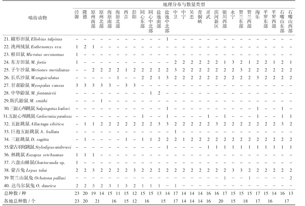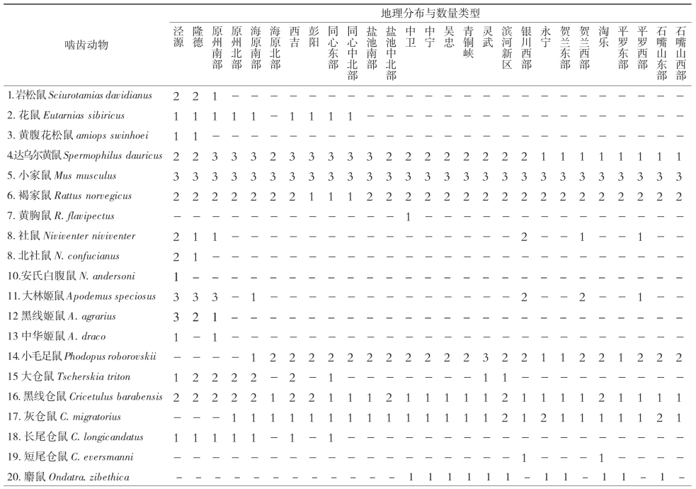 续表3-1 宁夏啮齿动物种类及其自然分布