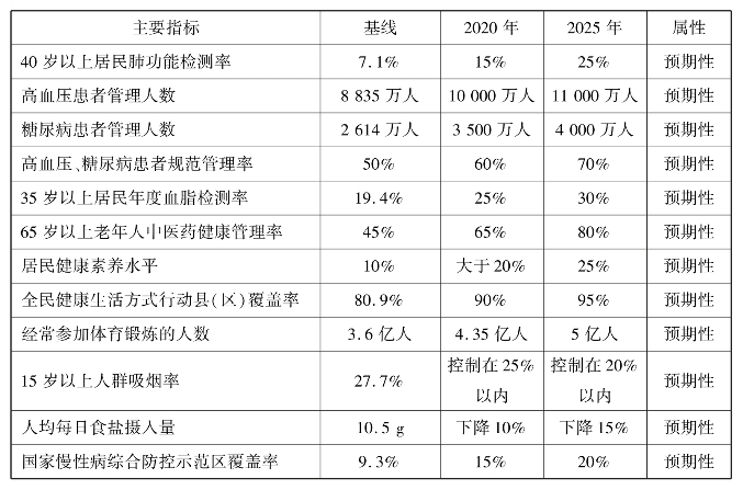 表1.1 中国慢性病防治中长期规划(2017—2025年)主要指标