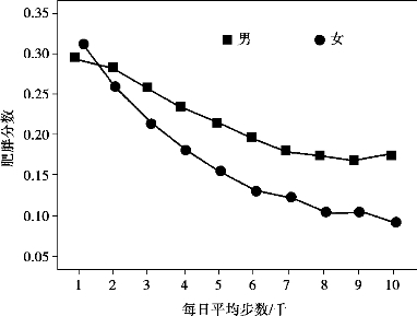 有效的体力活动是减少肥胖等慢性病发生的重要途径之一。2017年《Nature》杂志刊登的斯坦福大学相关研究显示,肥胖率的高低和体力活动密切相关,体力活动量越高(每日步数越多),体力活动差异性(Activity inequality)(如一个地区的居民每天步行的步数相近,则意味着体力活动差异性小)越小,肥胖率越低(Althoff,et al.,2017),如图1.1和图1.2所示。