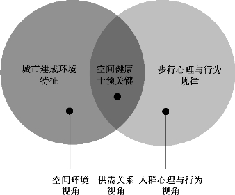 本书主要从空间环境视角、人群心理与行为视角及供需关系视角探讨城市建成环境特征、步行心理与行为规律以及二者的相互作用机制,如图1.4所示。