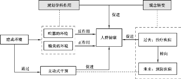 由此可见,城市建成环境的好坏对人群健康会产生直接的影响。城市蔓延、环境杂乱的城市环境会给人群带来各种健康问题;设计精美、绿化环境优良的城市环境会令人感受到心情放松,能够有效促进人群的身心健康。建成环境质量与人群健康呈现出显著的正相关关系,如图2.7所示。