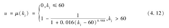 本文各项指标选取相同的隶属函数,确保在各项评价指标量纲不同的情况下实现各项指标值的无量纲化如下:
