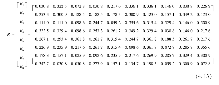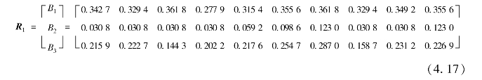由关系矩阵R结合上述3种综合评价模型B1,B2,B3计算可得到总评价矩阵R1: