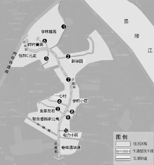 沙正街位于重庆市沙坪坝区中心,沙坪坝区保留着传统的住区特征,如小尺度混合功能的用地划分和高密度的街巷体系。随着街道两侧大量高层住宅和沿街商业综合体模式的出现,该地区人群步行出行越来越频繁。