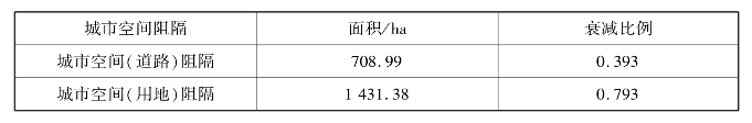 表5.18 城市空间(用地)阻隔总体衰减一览表