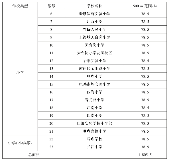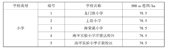 表5.9 各个小学500 m范围统计表