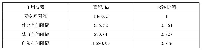 表5.22 社会、城市、自然三大空间阻隔总体衰减一览表