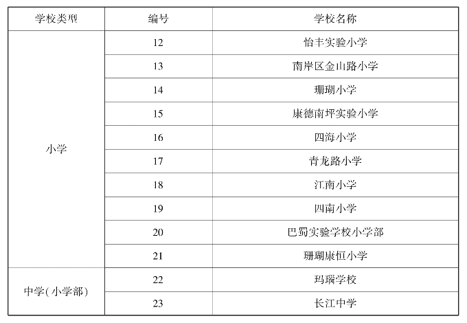 注:中学(含小学)作为研究只对其小学部进行研究,其他部分不进行研究。