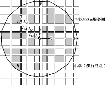 同时将相关数据栅格化,利用GIS以计算小学步行网络的可达性分布(胡志斌等,2005;马林兵 等,2006)。