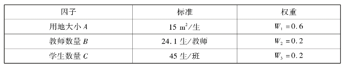 表5.10 学校容量的评价因子与权重
