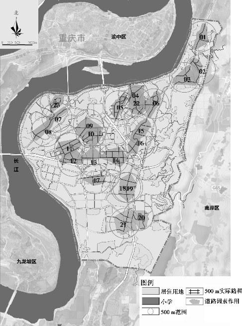 5.1.2 步行环境可达性的影响因素——以重庆南岸区23所中小学为例