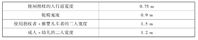 表6.21 满足各类人群舒适性通过需求的人行道宽度设定