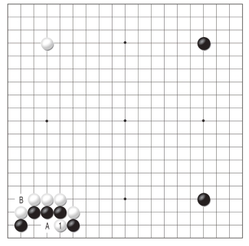 白1从里面断,是不易想到的手段,此后黑棋有A、B两种应对的方法。