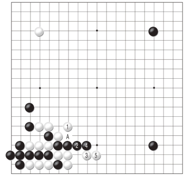白1单提一子可行,黑2长是先手,白3跳出应对,黑4飞出,白5靠住,双方形成作战,这样是两分的局面。