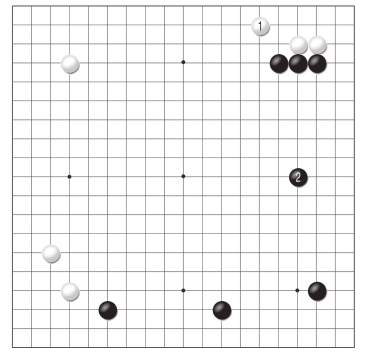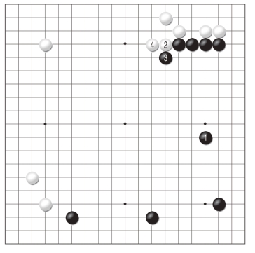 白1飞出是最容易想到的下法,黑2连片,双方简明应对,黑棋达到了目的,可以满意。