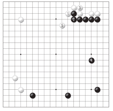 至黑5,白棋争得先手,再6位分投,打散黑棋阵势,这是黑方不愿意看到的。