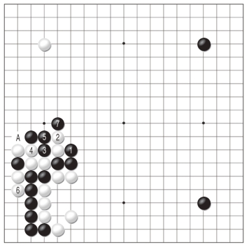 黑1单拐是好棋,等白2长的时候,黑棋再从3位断打,情况就发生变化了。白6如还是A位拐,黑7可以征吃两子,等于逼迫白棋无故送死一子,这实在难以接受。因此白棋转变策略改为白6吃角。