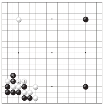 白1抱吃黑棋一子,看起来似乎也不错,但忽略了黑棋2位断打的严厉性,本来白棋的一个角,最后的结果是黑棋的目数反而明显占优,白棋当然不能接受。