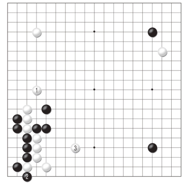 “走不好的地方干脆脱先”,对于黑棋的靠,白棋不要与之纠缠,直接脱先走1位反而是白棋的最佳应手,黑2退回是本手,白3拆边,白棋形势不坏。