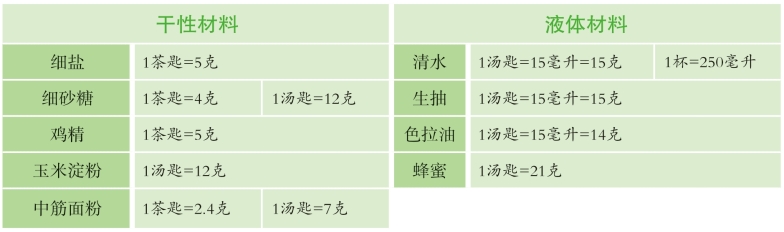 除了电子秤,量匙也是很重要的计量工具。一套量匙包含4个,由小到大分别是1/4茶匙(1.25毫升)、1/2茶匙(2.5毫升)、1茶匙(5毫升)和1汤匙(15毫升)。