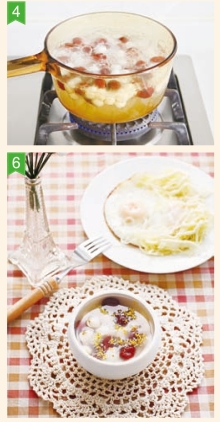 ·干桂花只是点缀,可以不用。糖桂花如果没有,也可以不用,多放几颗冰糖调味即可,只是少了桂花的香甜味道。
