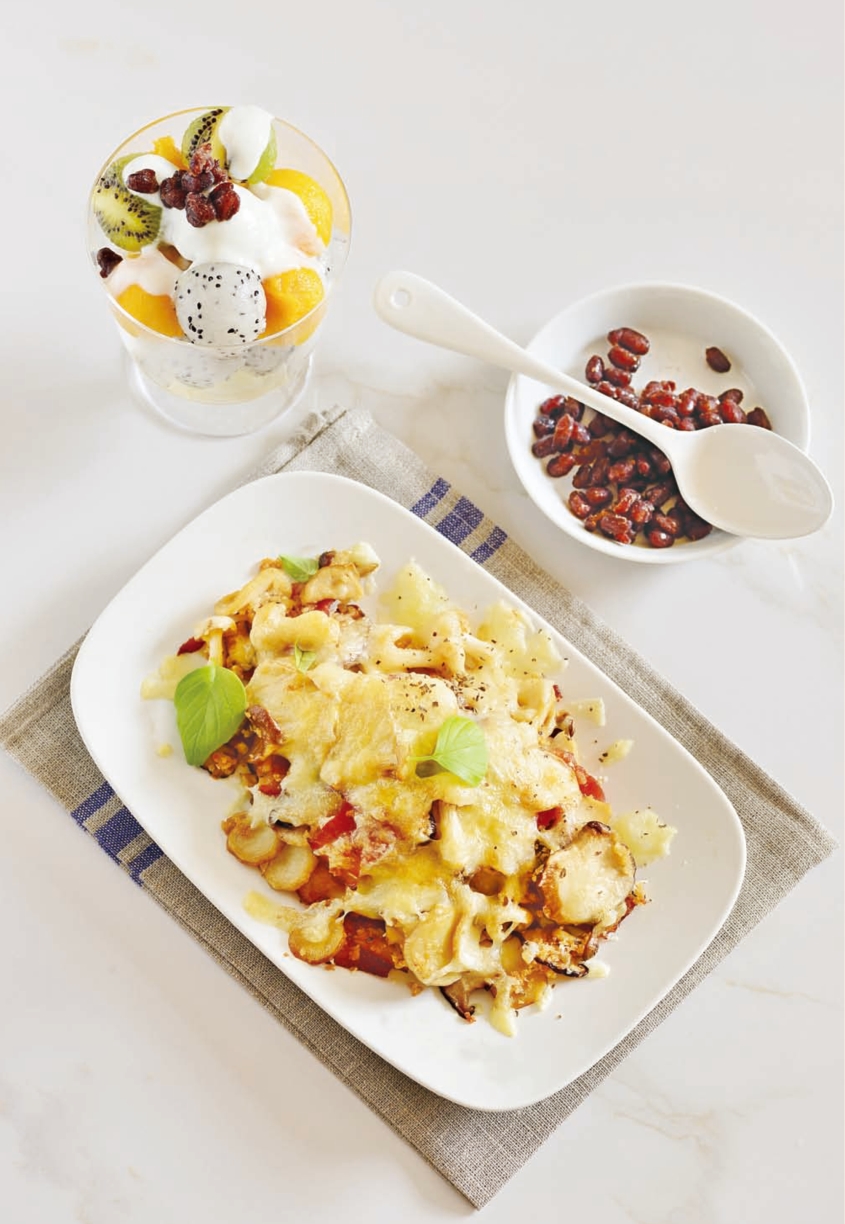 桂花圆子甜汤 糯米粉100克,干红枣20颗,冰糖3~4粒,糖桂花3汤匙,干桂花少许,温水(60℃)85克