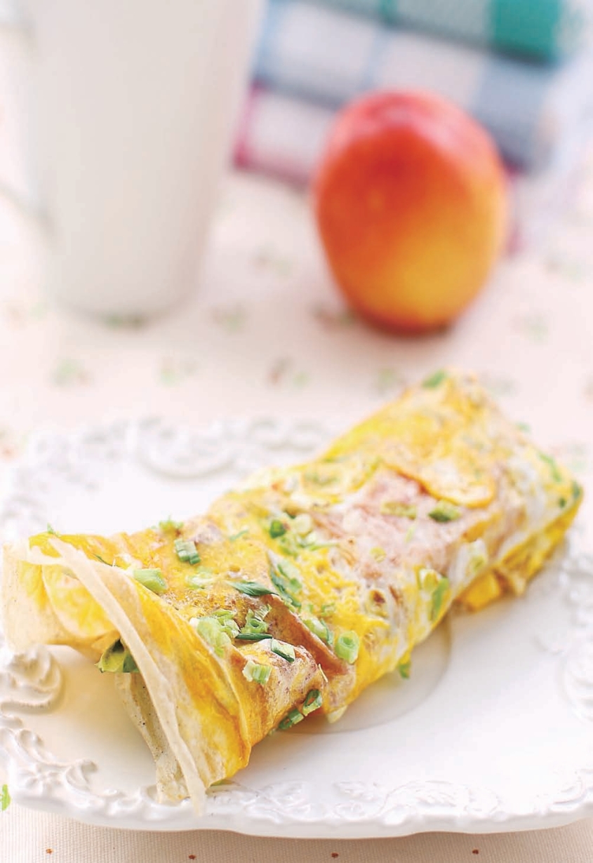 9 碗内调入1/2茶匙盐、自制红油(做法见p.42“鸡蛋薄饼套餐”)和香油,拌匀即可。