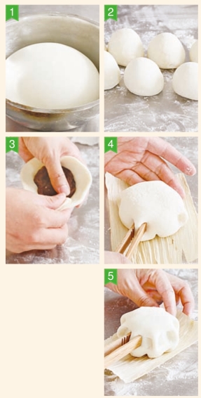 八角灯笼包 面粉400克,酵母3克,牛奶250克,豆沙馅儿适量