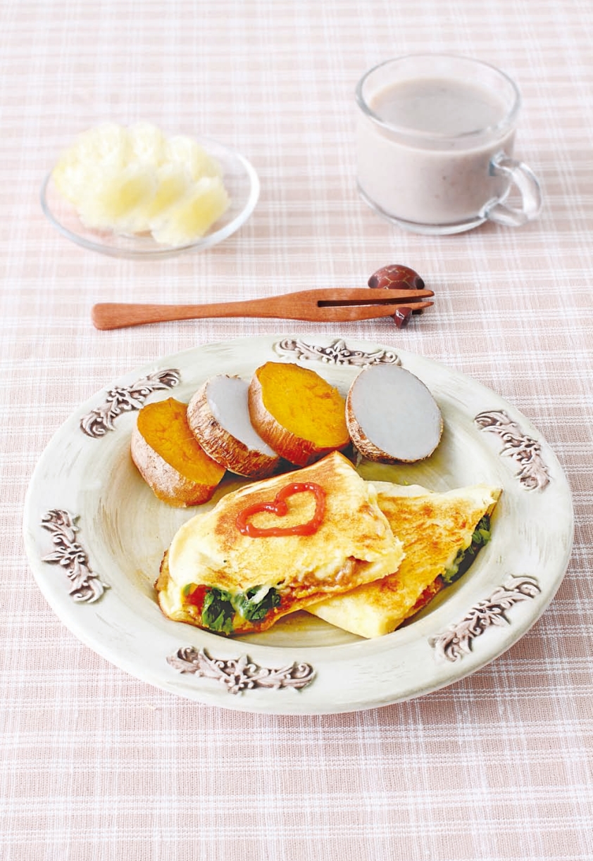 3 紫薯蒸熟。山药洗净,去皮,冲洗干净,装入保鲜袋。黄豆、大米分别洗净,浸泡一夜。青萝卜洗净。