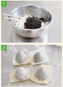 黑芝麻馒头 面粉200克,酵母2克,水110克,熟黑芝麻20克