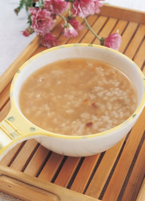 2 粳米洗净,放入锅内,倒入药液熬煮,待米熟烂时即成。