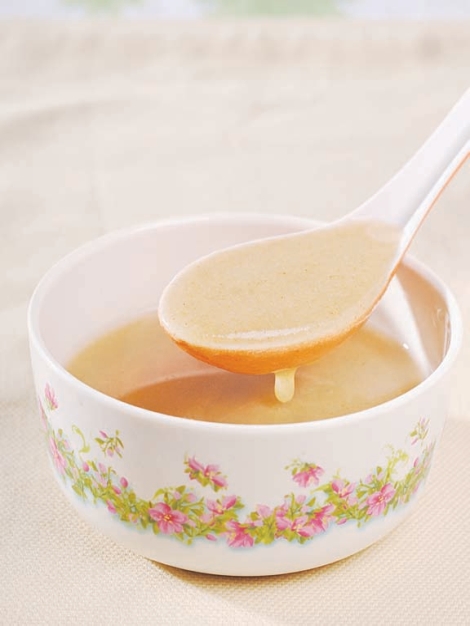 将米粉放在锅内,用文火炒至焦黄,再加少许糖和水煮沸即可。