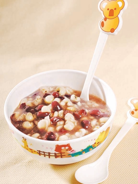 2 锅中加水,放入薏米、红小豆大火煮滚,转小火煮到豆烂,加适量白糖即可。