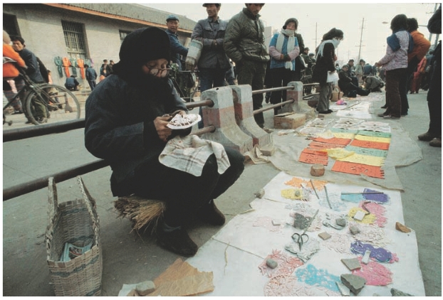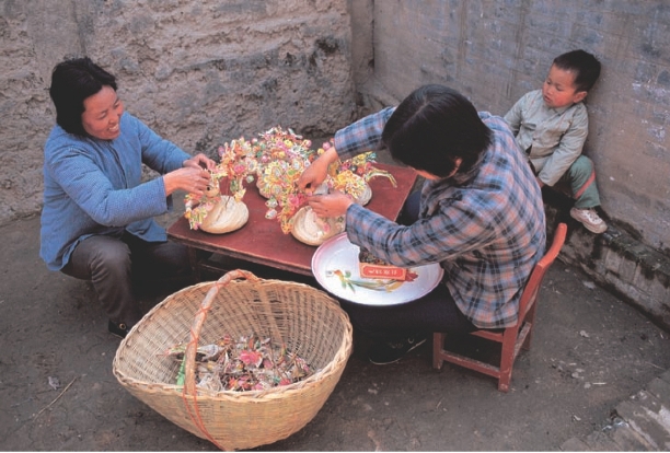 ②蒸好的花馍还要精心“打扮”一番(华县)1992年摄