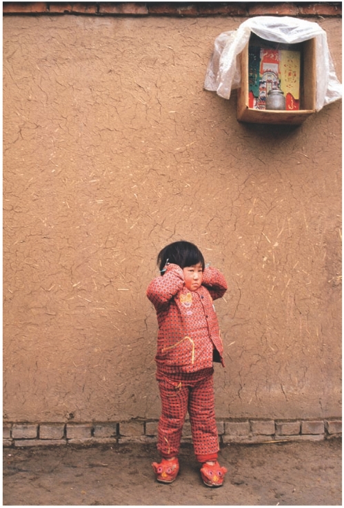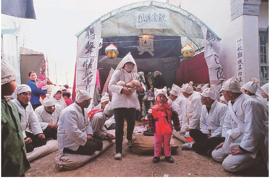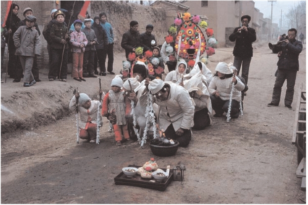 ①高寿仙逝为白喜事,重孙要披红。(凤翔县)1988年摄