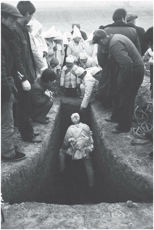 ②下棺前孝子要先检查一下墓穴(凤翔县)1988年摄
