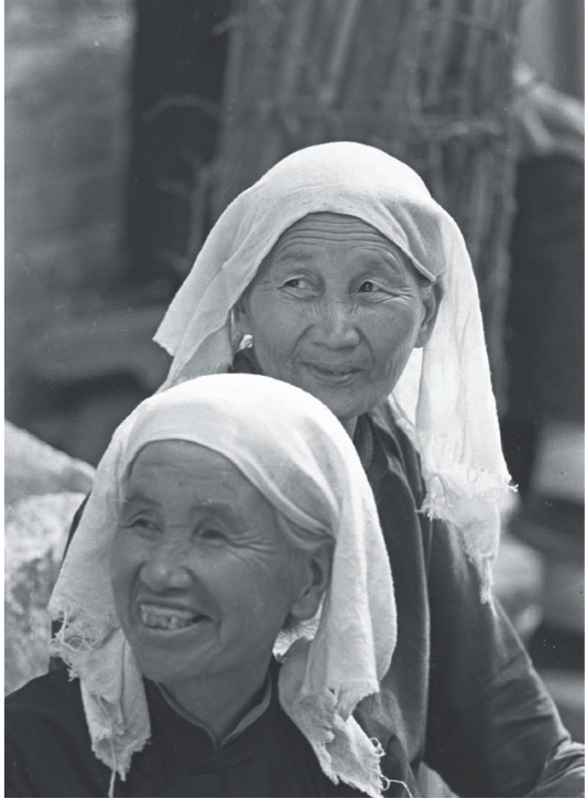 ①农村妇女头顶手帕的现象已经少见(长安区)1984年摄