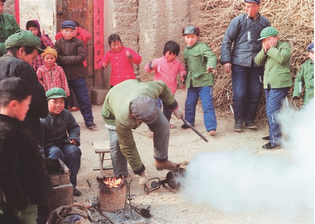 ②关中人爱蹲,即便是年轻人有凳子也不坐。(潼关县)1988年摄