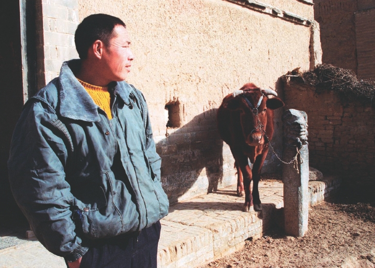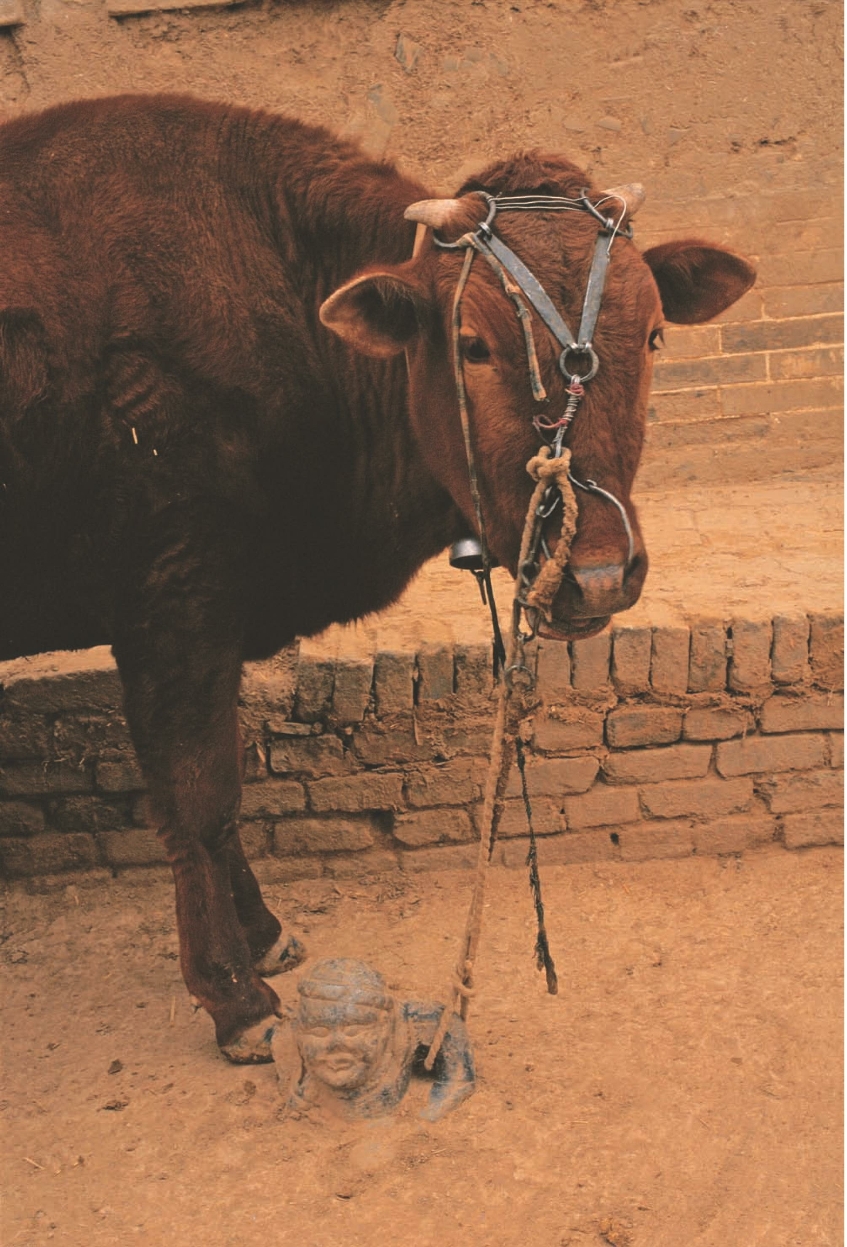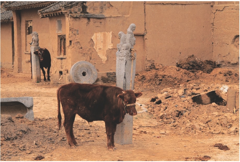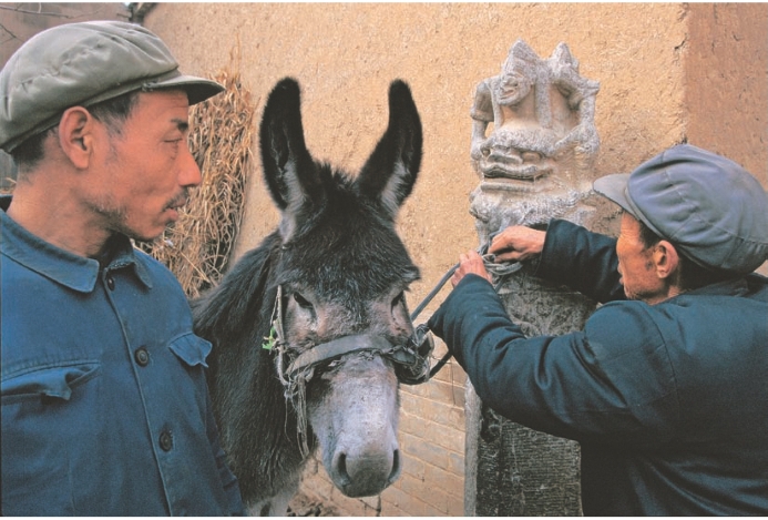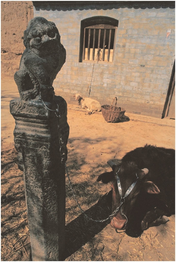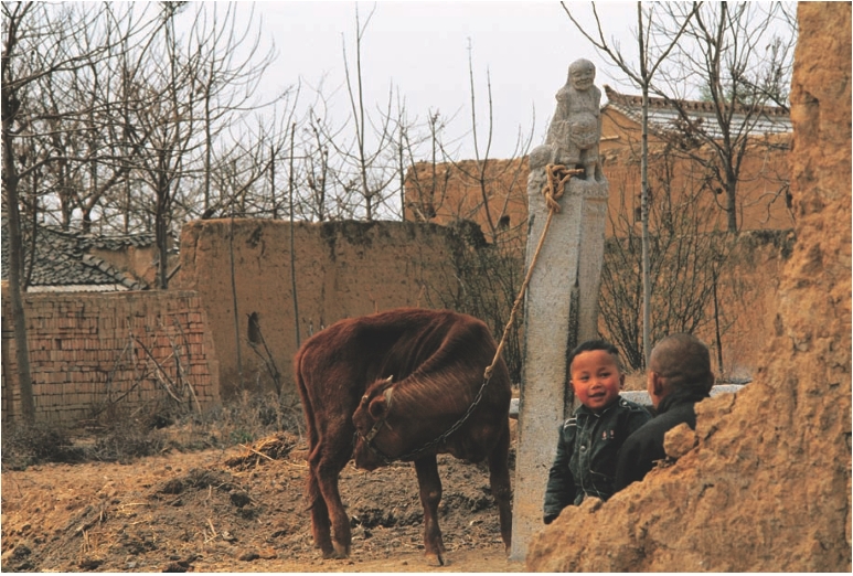 ①关中农村马很少,拴马桩大都用来拴牛。(合阳县)1992年摄