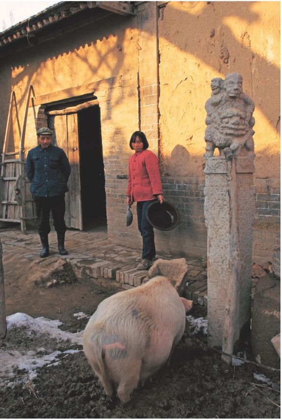 立在猪圈里的拴马桩(合阳县)1998年摄