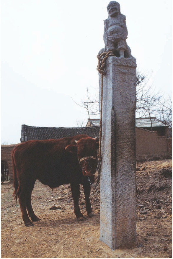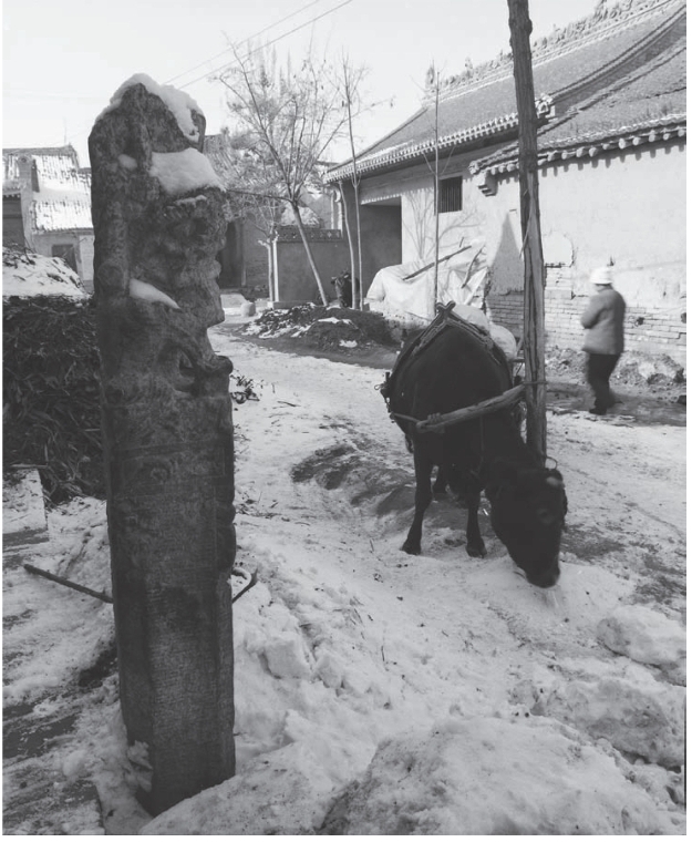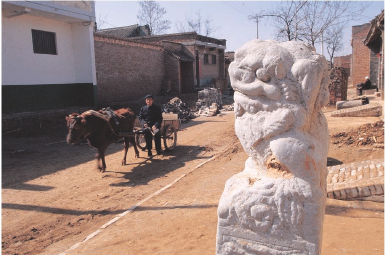 ①散落在自然村中的拴马桩很多都残缺不全(合阳县)1998年摄