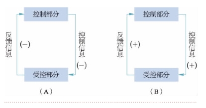 图1-4-2 负反馈(A)与正反馈(B)示意图