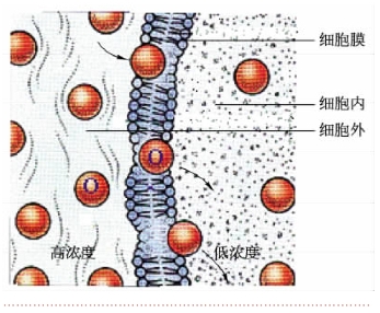 脂溶性的小分子物质依靠浓度差,由膜的高浓度一侧向低浓度一侧转运的过程,称单纯扩散。影响单纯扩散的因素有两个:①通透性:主要看这些物质脂溶性的大小以及该物质通过膜的难易程度,即膜对该物质的通透性,脂溶性高而分子量小易通过脂质双分子层。②浓度差:物质在膜两侧的浓度差,这是物质扩散的动力,浓度差越大,扩散量越大。氧气和二氧化碳等气体分子就是通过单纯扩散的方式进出细胞的,它们能溶于水,也溶于脂质,因而可以靠各自的浓度差通过细胞膜。单纯扩散的主要特点:顺浓度差扩散,细胞不消耗能量(图2-2-1)。