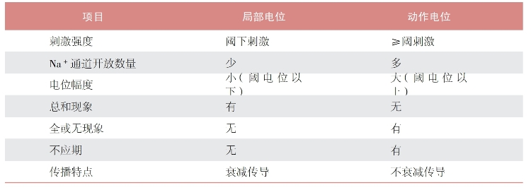 表2-3-2 局部电位与动作电位的区别